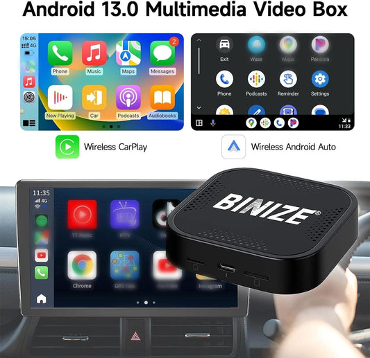 BINIZE CarPlay Ai Box 2.0 Wireless CarPlay/Android Auto with Video APPS 4G+64GB, 8Core, Supports Cars with OEM Wired CarPlay/Android Auto