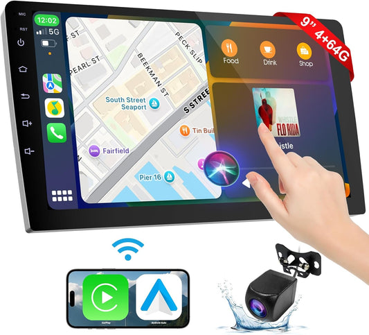 Wireless Double Din Car Stereo with Apple CarPlay/Android Auto,Carplay Screen for Car,Voice Control with Backup Camera,Bluetooth,Navigation, Mirror Link (9 Inch)