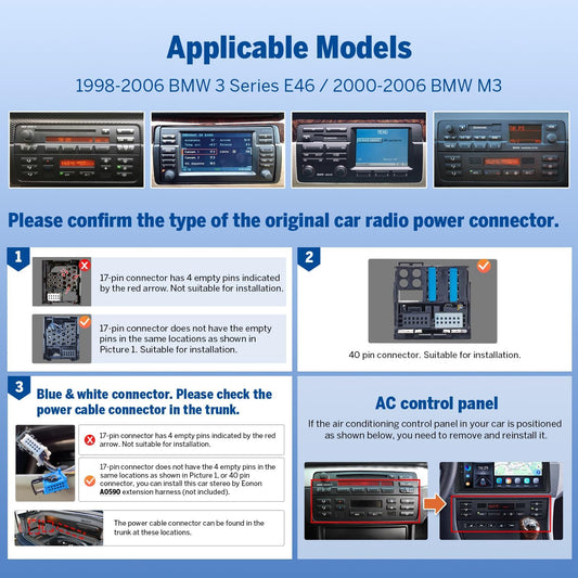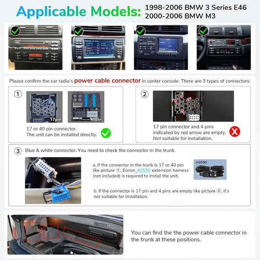 Eonon Car Stereo for BMW E46 M3/328i /330Ci/325i/325xi/328i/328xi/330i/330xi Wireless CarPlay Android Auto Head Unit, 9 Inch Touchscreen Radio, Bluetooth, AM/FM, SWC, GPS Navigation,E46A13