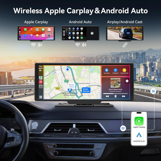 Wireless Portable Carplay Screen for Car - 10.26Inch Carplay & Android Auto Car Touch Stereo, with 4K Dash Cam, Backup Camera,Bluetooth,GPS Navigation
