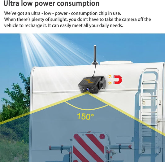Wireless Backup Camera for Trucks & RVs, Solar - Powered - Magnetic, Portable, No - Drill, No - Wire Easy Install, Night Vision, Rechargeable with 5" HD Monitor systems for Car, Camper, Trailer