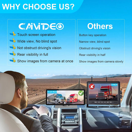 RV Wireless Backup Cameras with 10.26 inch Touch Monitor for Car Truck Trailer Bus Camper Motorhome, DVR Video Recording, Infrared Night Vision, Two Rear Side Wide View Back Up Camera Split Screen