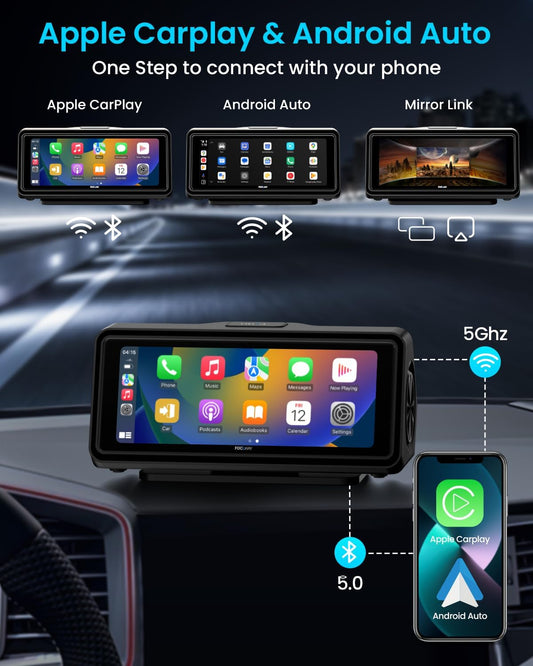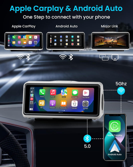 10.26" HD Wireless Android & Carplay Screen for Car, Portable Touchscreen Car Stereo with 4K Dash Cam, 1080P Backup Camera, Bluetooth, AUX/FM, Siri, Mirror Link, GPS Navigation