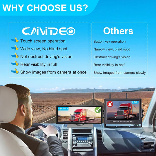 RV Wireless Backup Cameras with Monitor 6.86 Inch Touchscreen Built in DVR Video Recording for Truck RV Trailer Rear Side Wide View Back Up Camera Wireless Transmit Image Avoid Blind IP69K Waterproof