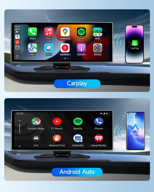 CARPURIDE 10.26 Inch Wireless/Wired Apple CarPlay, Android Auto and Mirror Link - 1600 * 600 IPS Touch Screen Portable Car Stereo, Bluetooth Audio, Siri, Navigation Car Screen for All Vehicles