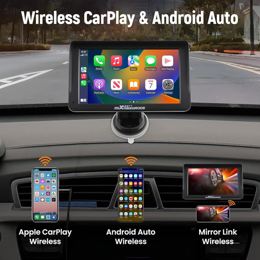 maXpeedingrods 7" Car Stereo with Wireless Apple CarPlay& Android Auto, Audio Receiver, Portable Car Radio with Backup Camera and GPS Navigation, Bluetooth, Mirror Link