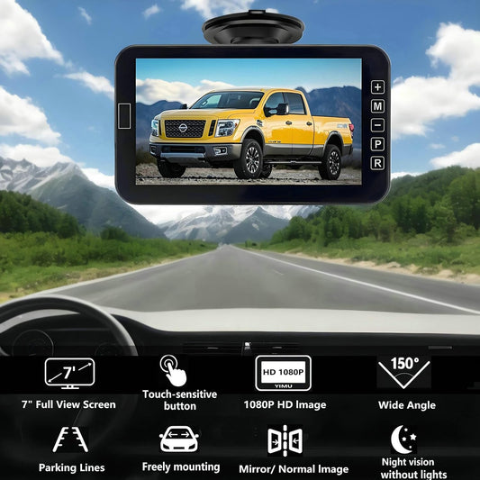 YIMU Car Backup Camera for Truck 7″ monitor AHD 2K Front Rear View Camera for car,USB Powered Plug-Play, Night Vision No-Delay DIY Grid Lines Touch Screen AHD702
