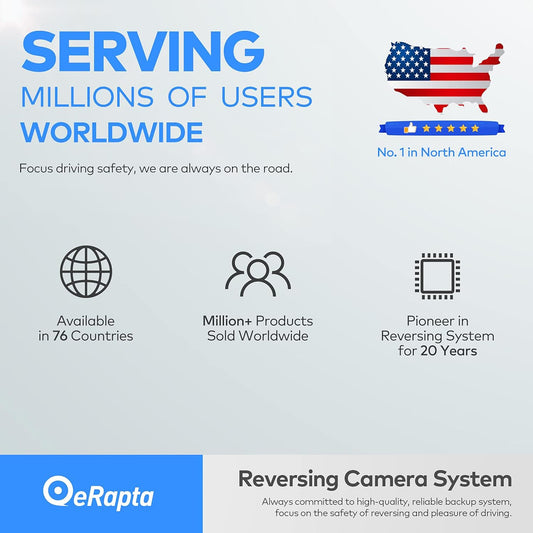 HD eRapta ERT02 Backup Camera Rear View License Plate Reverse Camera Universal for Pickup Truck Car SUV 149° Perfect Angle Night Vision IP69K Level Waterproof