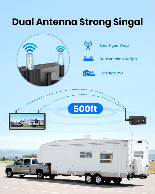 Hikity Dual Backup Camera Monitor Kit, 7'' 1080P RV Reverse Camera System for Trucks, SUV, Bus, Pickup, Plug & Play, Night Vision, Wide Angle, IP69 Waterproof Rear View Camera, (49.2ft Video Cable)