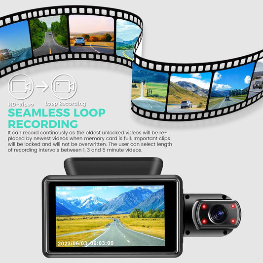 Dual Dash Camera for Cars, Dash Cam Front and Inside, 1440P Dashcam Front + 720P Inside Car Camera, 3'' Car Monitor with 32G SD Card, Night Vision G-Sensor Loop Recording Essential Car Accessories