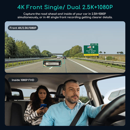 COOAU D30S 4K Dash Cam with GPS Wi-Fi, Front and Inside Dual 2.5K 1080P, Uber Car Camera with Infrared Night Vision, Supercapacitor, 4 IR LEDs, G-Sensor, Parking Mode, Loop Recording