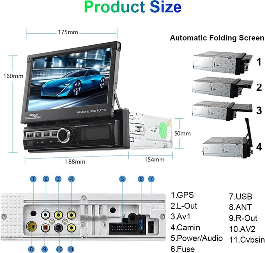 Hikity Single Din Touchscreen Car Stereo 7 Inch Touch Screen Car Radio, Automatic Flip Out Sceen Car Stereo with FM Radio, Bluetooth, Mirror Link, EQ, USB/TF/AUX Input, SWC, Backup Cam