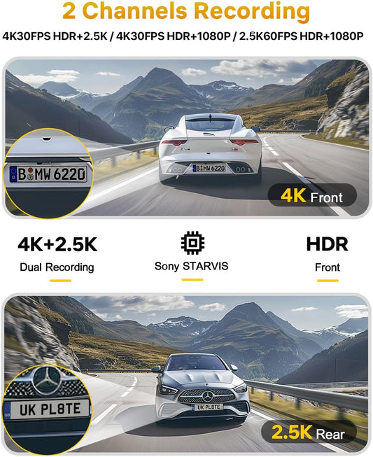 GKU Dash Cam Front and Rear, 4K 60fps+2.5K Dashcam,STARVIS Sensor, HDR, 5G WiFi GPS, 24H Parking Mode, Night Vision, 170°Wide Angle, Dash Camera for Cars with 1.47 Display, 64G SDcard (Black)