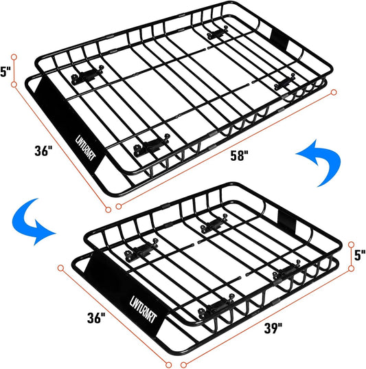 TUFFIOM 64"x 39"x 6" Universal Rooftop Cargo Carrier Basket, Extendable Steel Roof Rack Basket w/Straps with Hook, Heavy Duty Car Top Rack Luggage Holder Carrier Basket for SUV Car Truck Van