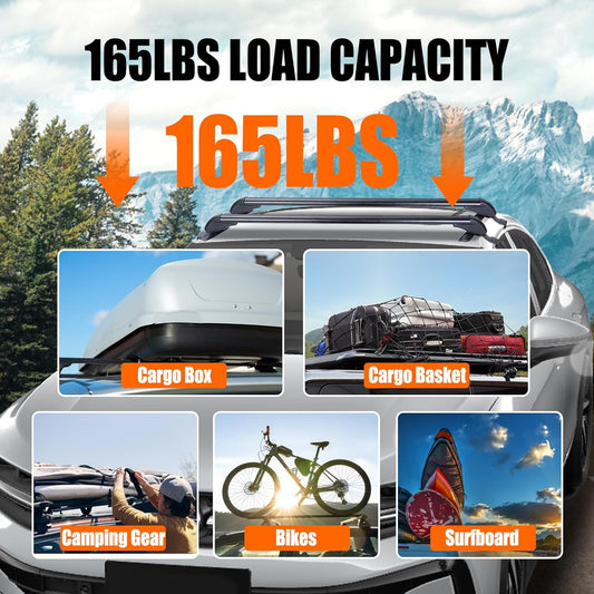 48" Universal Roof Rack Cross Bars, Upgraded Aluminum Lockable Crossbars with Extendable Window Frame & Dual Security Keys. 165lbs Max Load for Bare Roof Cars/Trucks/SUVs