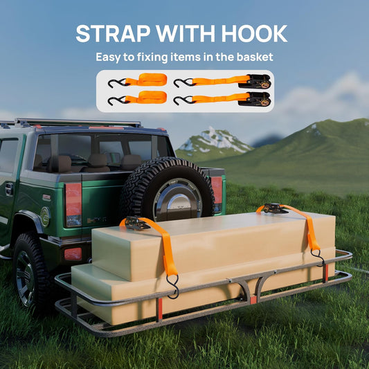Bonnlo 54''X 19''X5.5'' Hitch Mount Cargo Carrier Basket with Stablizer and Straps, 500 LBS Capacity Rear Luggage Rack Basket Fits Sedan, SUV, TAN