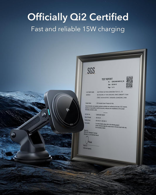ESR for Qi2 15W MagSafe Car Mount Charger, Qi2-Certified MagSafe Car Charger, Dashboard Magnetic Wireless Charging Mount, for iPhone 16/15/14/13/12, Galaxy S25, Fast Charging, Car Accessories,Black
