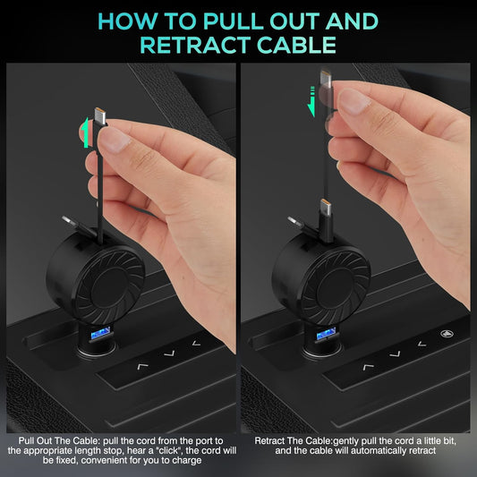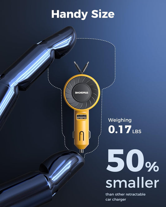 SUPERONE Retractable Car Charger with Retractable Cords, Small Fast Charge Retractable Car Phone Charger for iPhone and Android, Compatible with iPhone 16/15/14/13/12/11 Pro Max Samsung