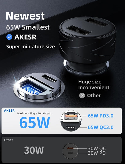 65W USB C Car Charger Fast Charging,12V USB Outlet Accesorios para Carro,Compact Cigarette Lighter Adapter,Car Phone Charger for iPhone/16/15/14/13/12 Samsung S25 S24 S23Google Android