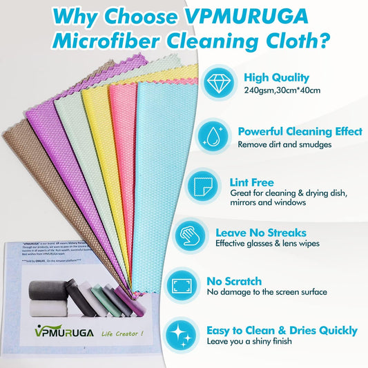 Easy Clean Streak Free Glass Cleaning Miracle Microfiber Cleaning Cloth for Kitchen,Counter,Window,Mirror Lint Free Dish Drying Cloths Glass Polishing Rag,All-Purpose,Reusable,Nanoscale Pack of 6