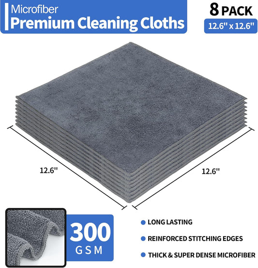HOMERHYME Premium Microfiber Cleaning Cloth, 8 Pack, 12.6" x 12.6" Cleaning Towels, Lint-Free & Streak-Free, Ultra Absorbent, 300GSM, Reusable Microfiber Towel for Cars Kitchen Garage House Office