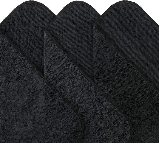 POLYTE Premium Microfiber Cleaning Towel,16 x 16 in, 12 Pack (Black)
