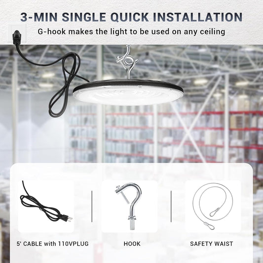 150W UFO Led High Bay Light,120VAC,21050LM 5000K Daylight Area Lighting,IP66 Waterproof 650W MH/HPS with Plug Commercial Bay Lighting for Warehouse/Shop/Workshop/Barn/Gym/Factory