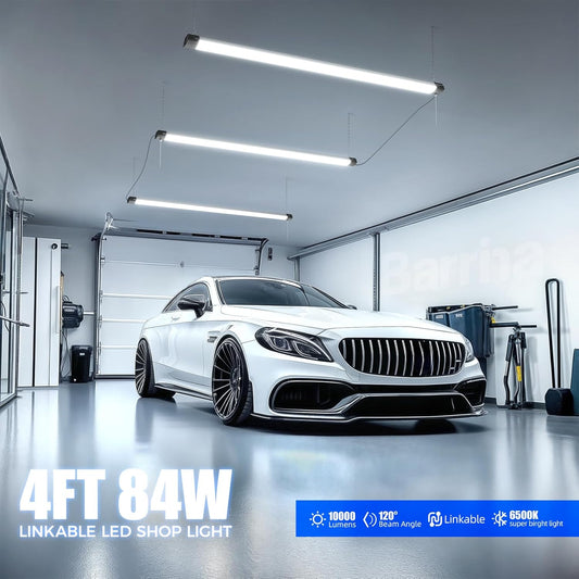 Barrina BS84 LED Shop Lights for Workshop 4FT, 84W, 10000LM, 5000K Linkable Light Fixture for Garage, Basement, Hanging or Flush Mount, ETL, 4 Packs