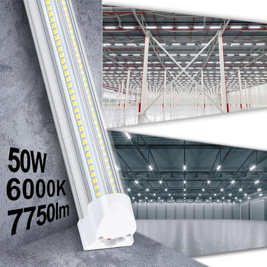 LED Shop Lights - 4FT 50W LED Light Fixture, 4 Foot High Output 7750Lumen, 6000K, Clear Cover, V-Shape Linkable, Plug and Play, T8 LED Tube Light for Garage, Workshop (10 Pack)