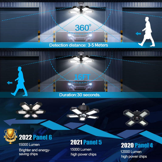 TANBABY Garage Lights, 250W Deformable Ceiling LED Shop Lights, 20000LM LED Light 6500K Garage Lighting 7+1 Adjustable Panels Bulb