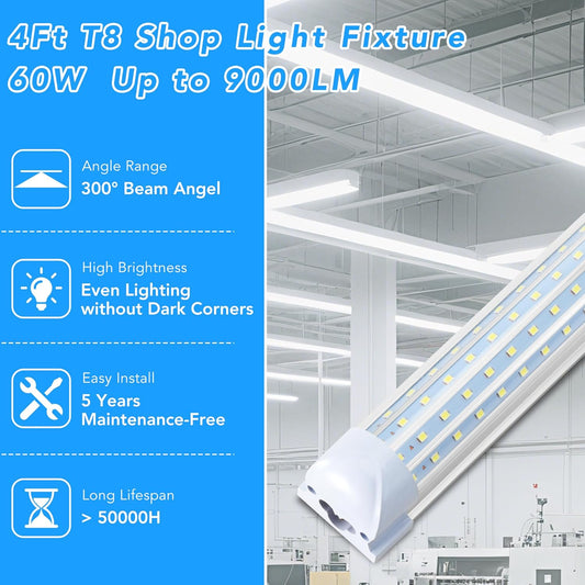 T8 LED Shop Lights 4FT Garage Light, 6 Pack 60W 9600LM 6000K Daylight Work Lights Ceiling LED, Linkable, Plug & Play, Energy-Saving for Warehouse Basement Room(V8)