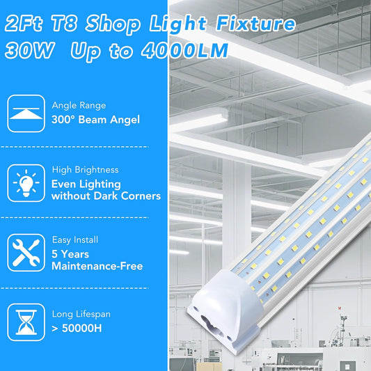 2 Pack 2FT T8 LED Shop Lights, 30W Integrated Tube Light, 4800LM 6000-6500K Daylight, Linkable Lighting, Plug & Play Energy-Saving Commercial Bay Lighting for Garage Warehouse Basement (V8)