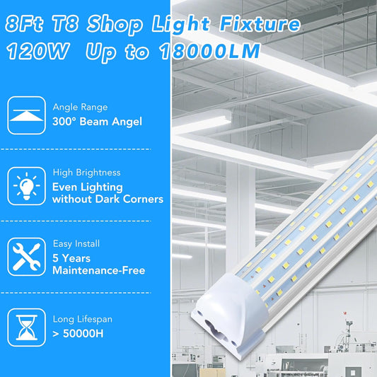 (6-Pack), 8FT LED Shop Light, Super Bright 120W Shop Lights, 19800LM 5000K 8 Foot Led Lights, Linkable 96" Shop Lights Lighting for Garage with Plug, U Shape T8 8' Led Light Fixtures