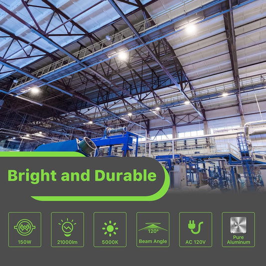 LED High Bay Light 150W, 21000lm 5000K UFO Led High Bay Light(600W MH/HPS Equiv.), Commercial Bay Lighting with 5ft Cable US Plug for Garage Shop Barn Warehouse