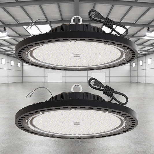 2 Pack UFO LED High Bay Light 250W, 35000 LM, 5000K with 5ft Power Cord, US Plug, Bright LED Shop Light for Basement Commercial Factory Garage Lighting, IP66 Waterproof, AC110-277V, ETL Listded