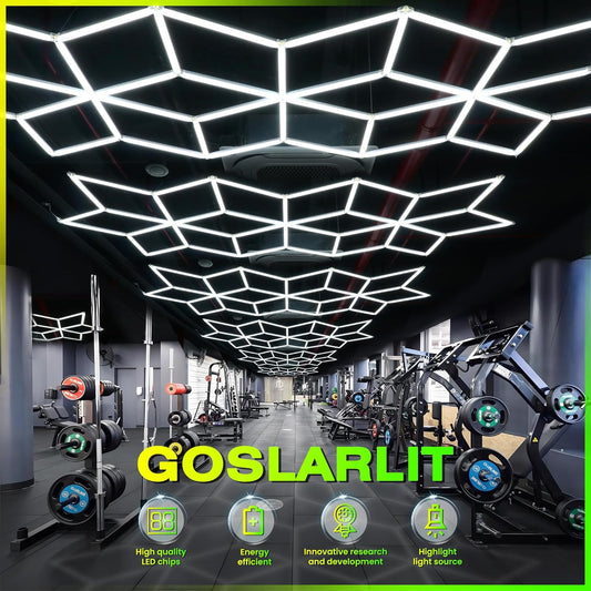 GOSLARLIT LED Garage Light Hexagon, Hexagram Shop Detailing Lights, 6500K Daylight White, Linkable Plug-in Ceiling Light for Garage Workshop Basement Gym Warehouse