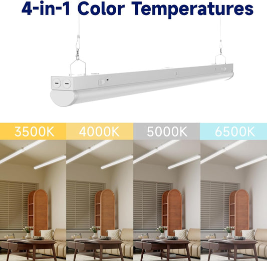 4FT LED Linear Strip Light, LED Shop Lights 30W/35W/40W Selectable,4 Color Selectable 3500K-6500K Adjustable,0-10V Dimmable Commercial Garage Office Ceiling Light Fixture, ETL DLC Listed (4 Pack)
