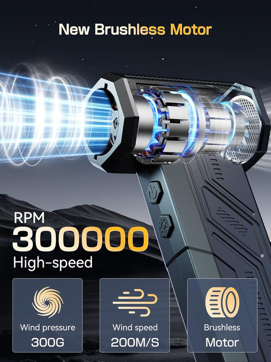 Electric Air Duster, 300000RPM 4-Gear Adjustable Compressed Air Duster with Light, Rechargeable Brushless Motor Air Blower for Keyboard, PC, Car, and Home Cleaning Reusable Replaces Compressed Air Can