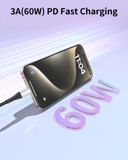 2ft USB C to USB C Cable, 3 Pack Braided USB C to C Charging Cord 60W/3A Type C to Type C Cable Fast Charging Car Charger for iPhone 16 15 Pro Max, Samsung Galaxy S23 S22, Moto LG, Google Pixel, iPad