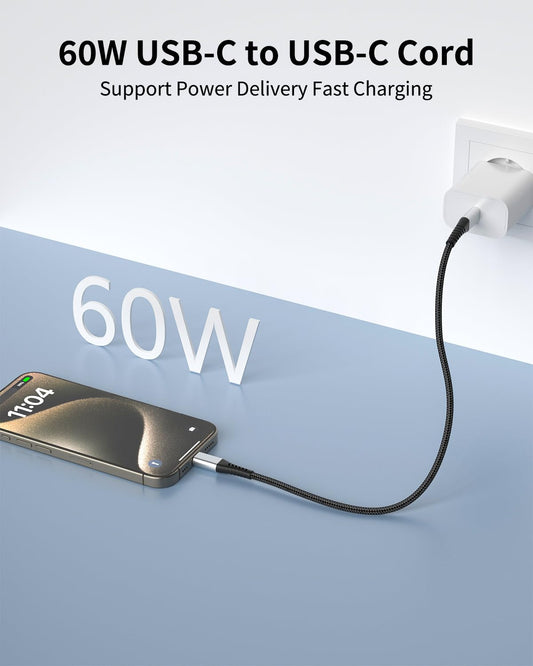USB C to USB C Cable 3FT, 3-Pack 60W USB Type C to C Fast Charging Cable Braided 3 Foot USBC to USBC Cord for iPhone 16 15 Pro Max, Samsung Galaxy S23 S22, Moto LG, Google Pixel, iPad Air 4 (1M)