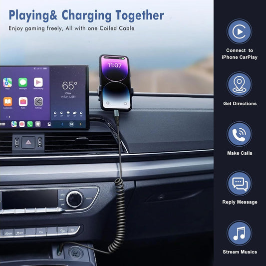 Coiled Lightning Cable 6FT,2 Pack MFi Certified Retractable iPhone Car Charger Cord,Apple CarPlay Cable Compatible with iPhone 14/13/12/11 Pro Max/XS Max/XR/X/8/7/iPad