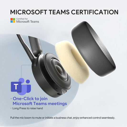 Wireless Headset,Bluetooth Headset with Microphone Noise Cancellation Wireless Headphones with USB Dongle Connection and Microphone Mute for PC/Laptop/Smartphone/Teams/Home
