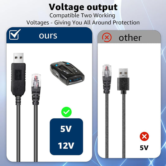 USB to RJ11 Radar Detector Power Cable,DC5V-12V Power Cable Replacement for Escort, Uniden, Radenso XP, Beltronics & Whistler Radar Detectors (13FT Length)