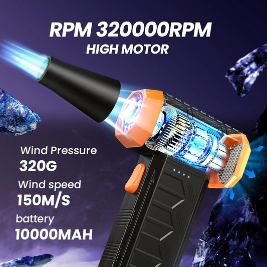 Electric Air Duster & Blower, 120,000RPM Compressed Air Duster for PC/Keyboard/Car, 7600mAh Rechargeable, 3-Speed LED Fan, No Canned Air - Keyboard Cleaner, Turbo Fan, PC Cleaning Kit