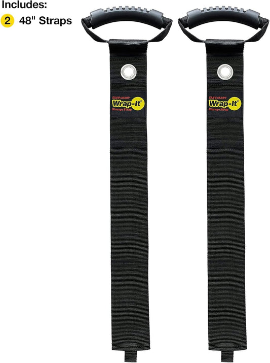 Easy-Carry Wrap-It Storage Straps - 48” (2-Pack) Black with Grommet - Garden Hose Caddy and Cord Wrap for Indoor and Outdoor Cable Organizing