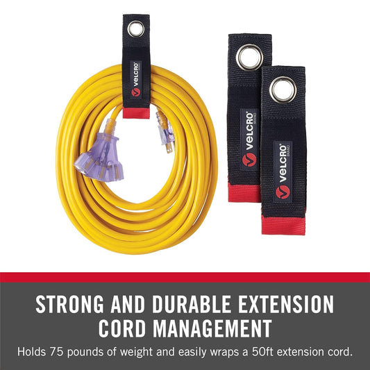VELCRO Brand Easy Hang Extension Cord Organizer Holder | Large 18" Heavy Duty Straps for Garage Organization and Storage Grommet Hangs Easily on Wall Hooks or Nails 2pk, Holds 100bs, Black