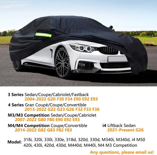 Custom Car Cover Compatible with BMW 3 Series M3 Sedan 2004-2025/4 Series M4 2013-2025, Waterproof Car Cover with Cotton Lining, All Weather Rain Snow Sun UV Cover for Outdoor Indoor