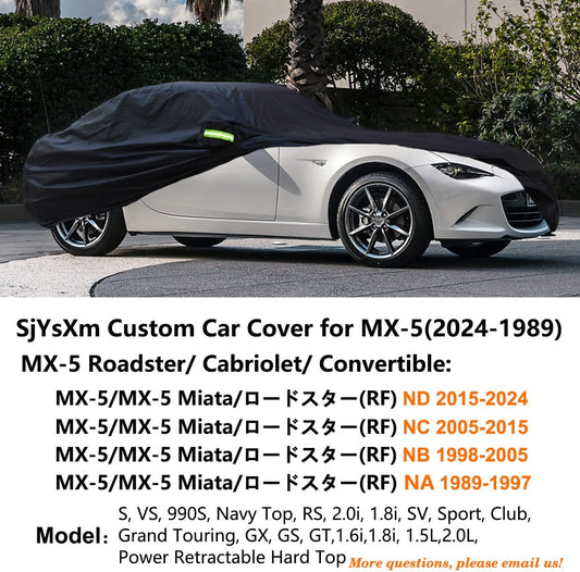 Custom Car Cover Compatible with Mazda MX-5 Miata/RF ND NC NB NA 1989-2025, Waterproof All Weather Car Covers with Cotton Lining for MX-5 MK1 MK2 MK3 MK4, Rain Snow Sun UV Cover for Outdoor