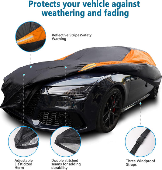 MORNYRAY Waterproof Car Cover All Weather Snowproof UV Protection Windproof Outdoor Full car Cover, Universal Fit for Sedan (Orange, Fit Hatchback Length(Up to 173 inch)