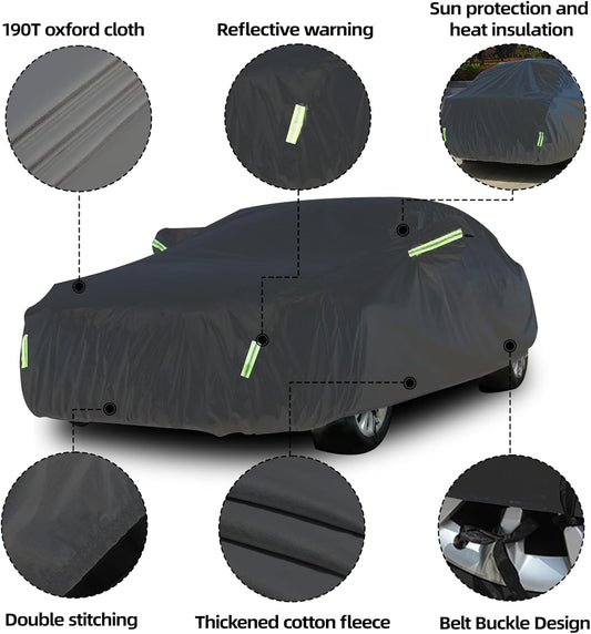 AUQDD 6-Layers PEVA New Material Sedan SUV Full Padded Car Cover Waterproof All Weather Weatherproof UV Sun Protection Snow Dust Storm Resistant Outdoor Exterior Custom Form-Fit Straps 188"-198"Black